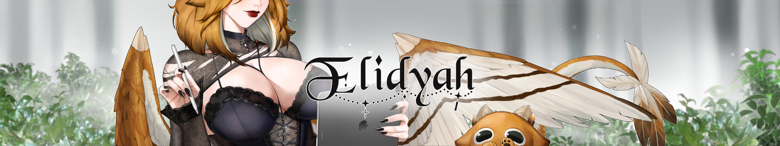 Hello, my name is Elidyah! I am a fulltime art student and a part time Twitch streamer and illustrator. I present myself as my Dragon Owl VTuber persona. I mainly enjoy creating character illustrations. That includes original characters, VTubers, anime and game characters.